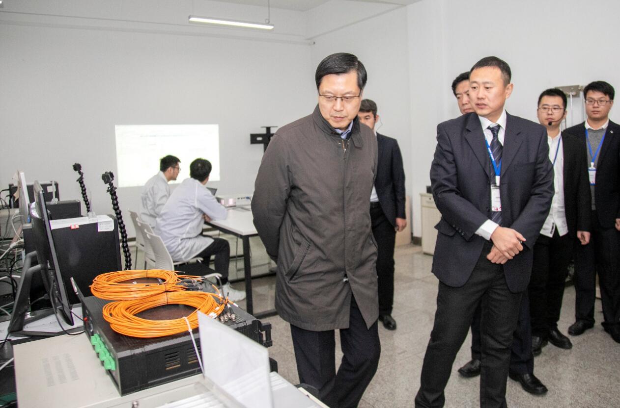Chairman Gao Yi, President Guan Huiming, relevant experts from Shenyang University of technology and Liaoning Electric Power Research Institute accompanied vice mayor Gao Wei and relevant leaders to visit the company's photoelectric measurement and control engineering technology research center, electric power safety monitoring and early warning platform, software and hardware technology research and development center, urban integrated pipe gallery system model, etc., and watched the demonstration of power data service cloud platform on site 。