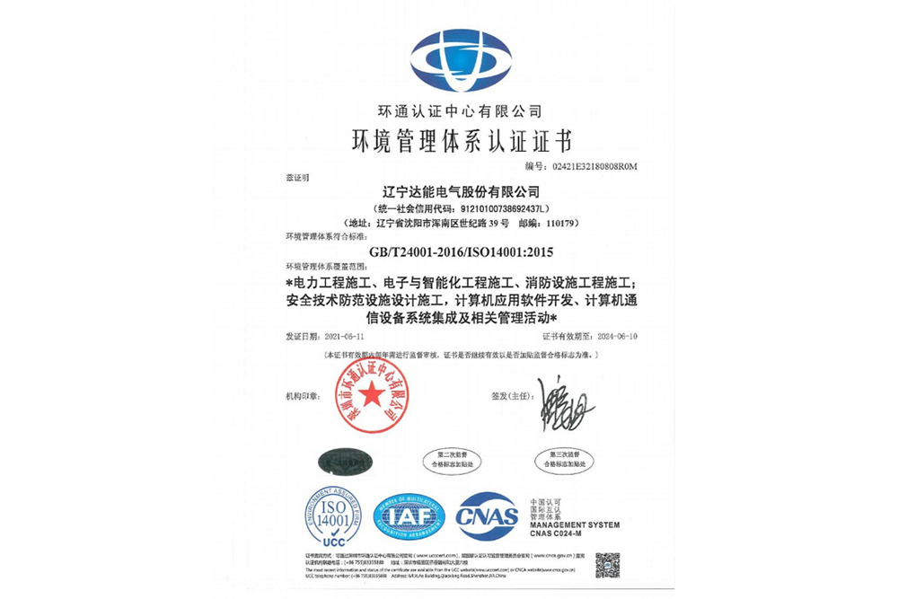 环境管理体系认证证书