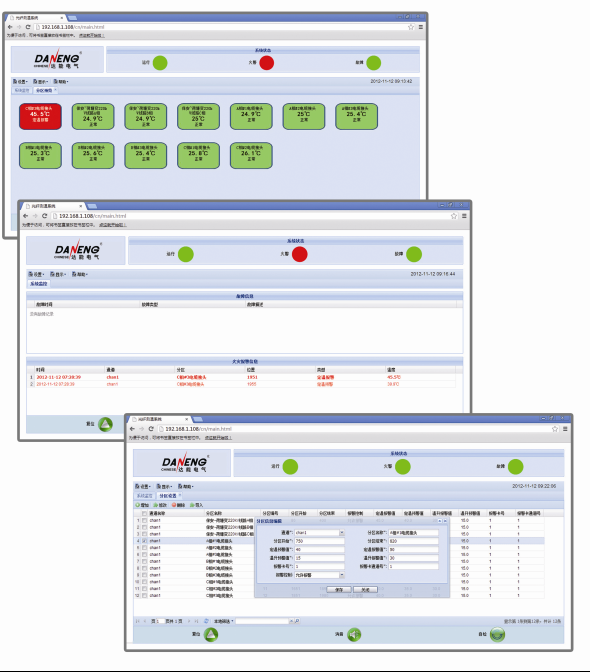 3、报警、分区设置:防火分区、定温报警、温升报警的设定和报警输出的配置均通过软件进行设置,灵活方便。